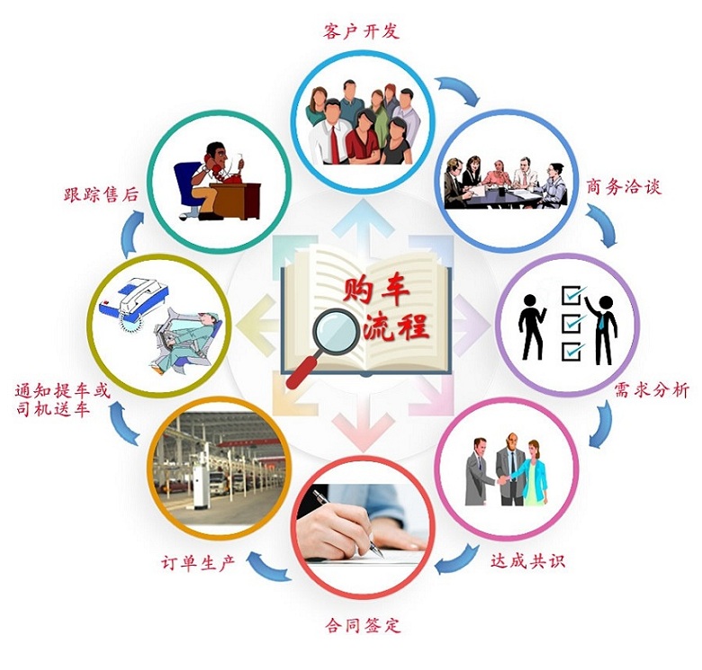 電話洽談或實地考察> 2.簽訂合同 > 3.安排生產 > 4.交付驗收 >5.簽字確認(僅限于代送車輛)訂合同 >3.安排生產 > 4.交付驗收 >5.簽字確認(僅限于代送車輛)?>終身售后服務