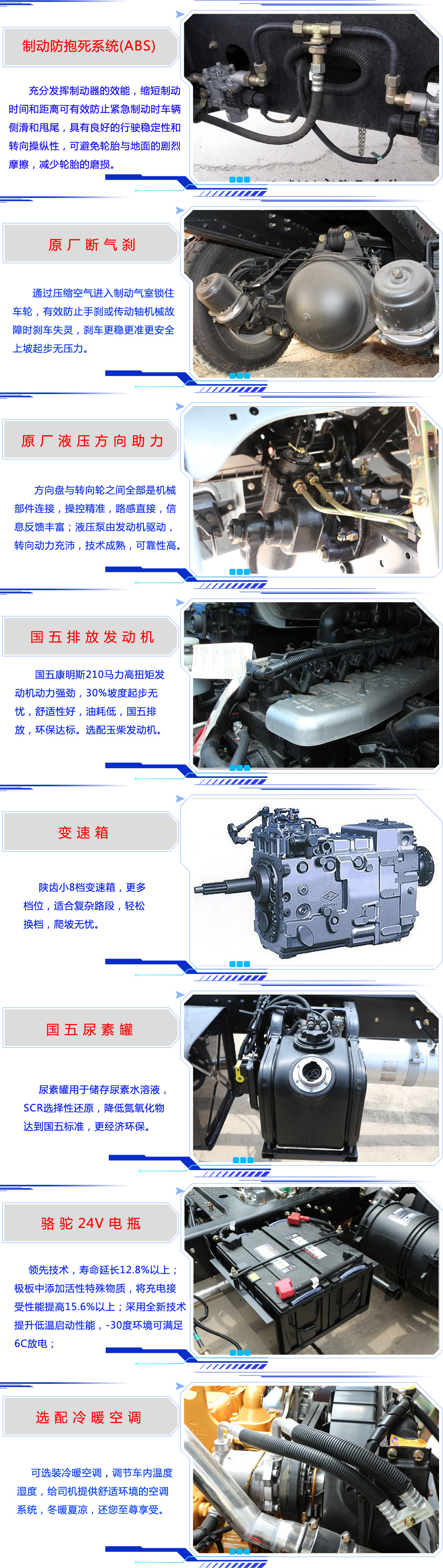 | 其他 | 1,罐體有效容積18.55立方米,介質:丙酮水溶液,密度:800千克/立方米,罐體尺寸為(mm): 6900×2400×1550;2,防護材料:Q235A碳鋼,連接方式:左右側面及后下部防護均采用焊接連接,后部防護斷面尺寸(mm):150×50,后部防護離地高度(mm):550;3,ABS生產廠家: 東科克諾爾商用車制動系統(十堰)有限公司,型號:3631010-C2000;4,文字噴涂位置,車輛顏色及局部細節可變化;5,隨底盤選裝駕駛室,選裝駕駛室遮陽板與側面臥鋪開窗口。 | ||