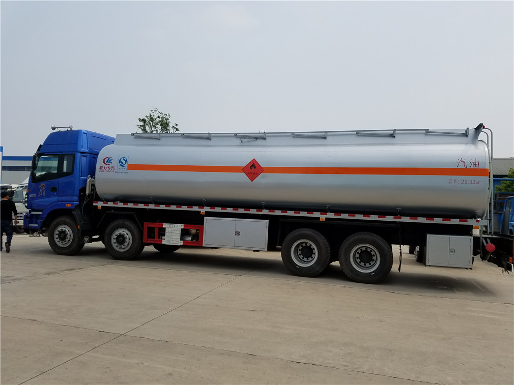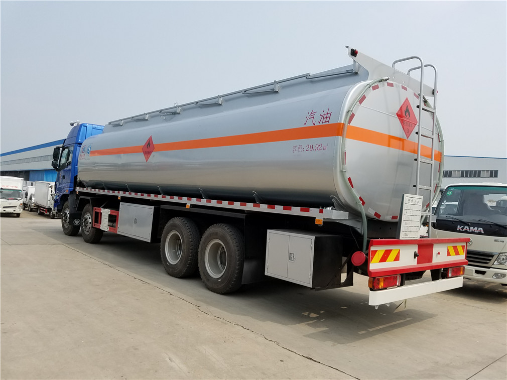 | 其他 | 1、该车适用于危险品运输。2、运输介质为柴油,煤油时密度分别为830,800千克/立方米;类项号:3;罐体有效容积:20.6立方米。罐体外形尺寸(长×长轴×短轴)(mm):9000×2270×1470。运输介质为汽油时密度为700千克/立方米;类项号:3;罐体有效容积:24.3立方米。罐体外形尺寸(长×长轴×短轴)(mm):9000×2410×1620。3、仅采用底盘子午线轮胎和带ABS的底盘,该车前轮安装盘式制动器,前置排气管,装配限速装置,限速79km/h。安装带有卫星定位功能的行驶记录仪。ABS控制 | ||