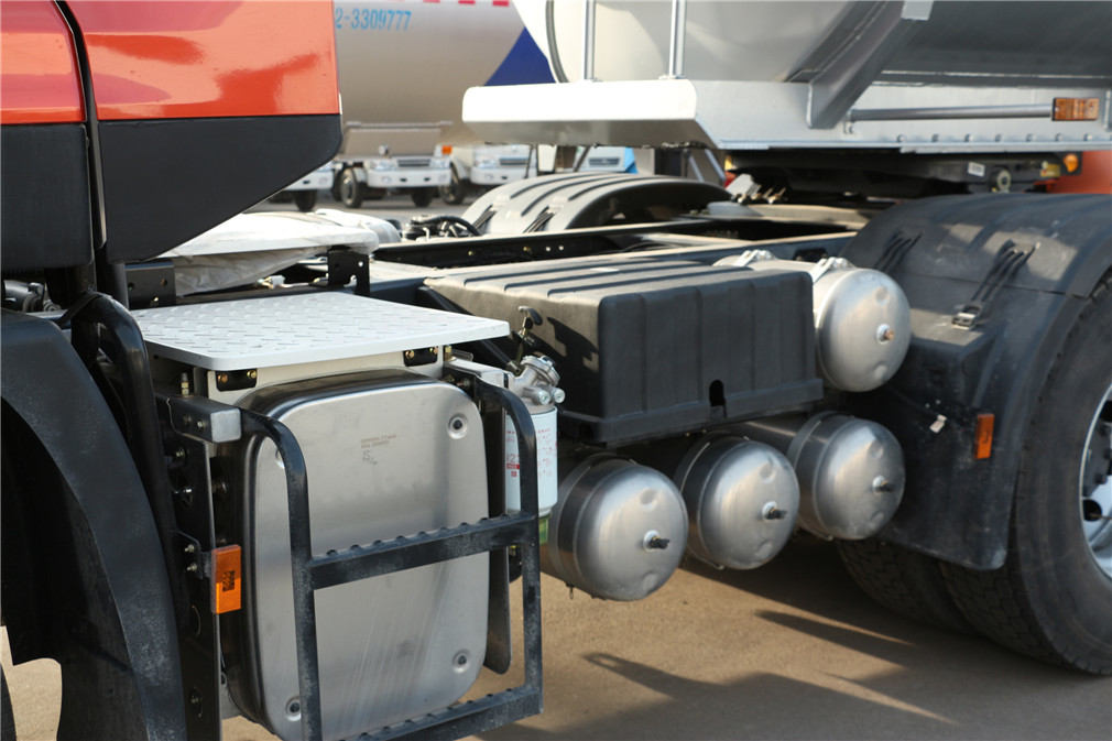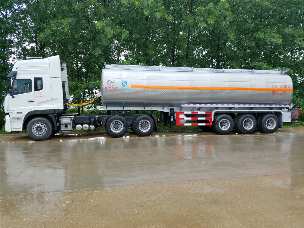 | 其他 | 采用适用于牵引危险品运输半挂车的牵引车。危险货物运输车辆的类型(FL型车辆)。类项号:3,罐体有效容积:42立方米,该车为三轴鹅颈式半挂车:罐体外形尺寸(mm):长×长轴×短轴(前端/后端)为:10800×2480×1930/2130。可选装挡泥板样式,前爬梯。防护材料:Q235A碳钢,连接方式:左右侧面及后下部防护均采用焊接连接,后部防护断面尺寸(mm):140×50,后部防护离地高度(mm):480。ABS生产厂家/型号:梁山顺安达汽车科技有限公司/SAD-ABS4S/2M,梁山海纳电子科技发展有限公司/HNABS-4S/2M。 | ||