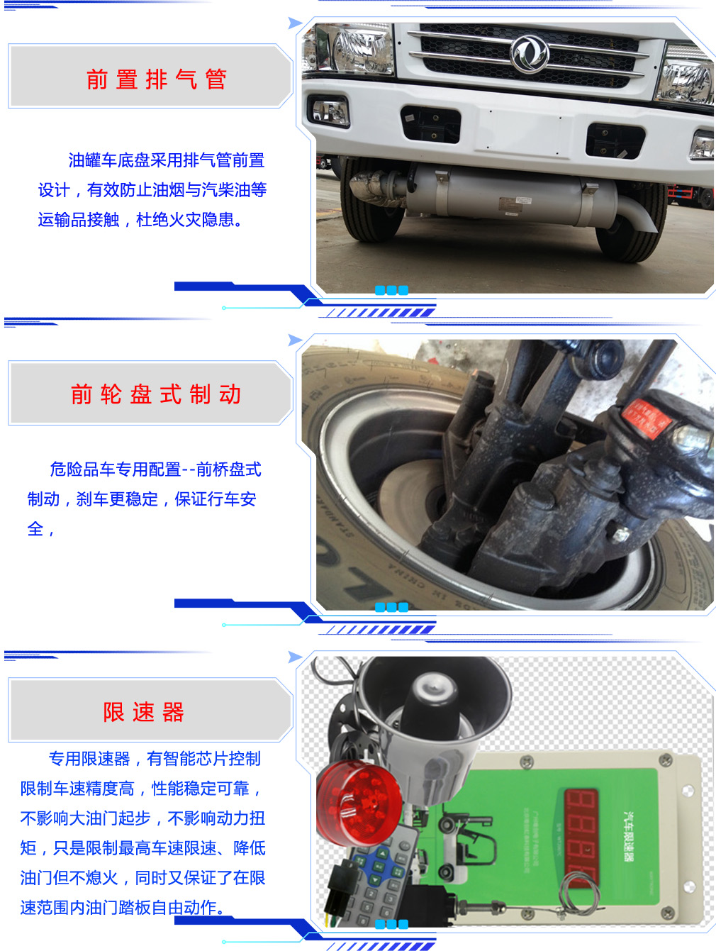 | 其他 | 隨底盤選裝駕駛室。危險貨物運輸車的車輛類型為:EX/Ⅲ,運送爆炸品的品名:黑火藥,壓縮黑火藥,電(非電)引爆雷管,爆破炸藥,導爆索,點燃導火索.煙花爆竹。 運送爆炸品的項號:1.1D,1.1D,1.1B,1.1D,1.4G.1.4G。車廂頂部封閉,不可開啟,選裝右側廂體前部開門,側防護為螺栓連接,后防護為焊接連接,后部防護裝置斷面尺寸(寬×高):50mm×100mm,離地高度為410mm.該車裝配具有衛星定位功能的汽車行駛記錄儀,該車裝配有限速裝置,ABS控制器型號及生產企業:CM4XL-4S/4M,廣州科密汽車電子控制技術股份有限公司,安裝前盤式制動器。 | ||