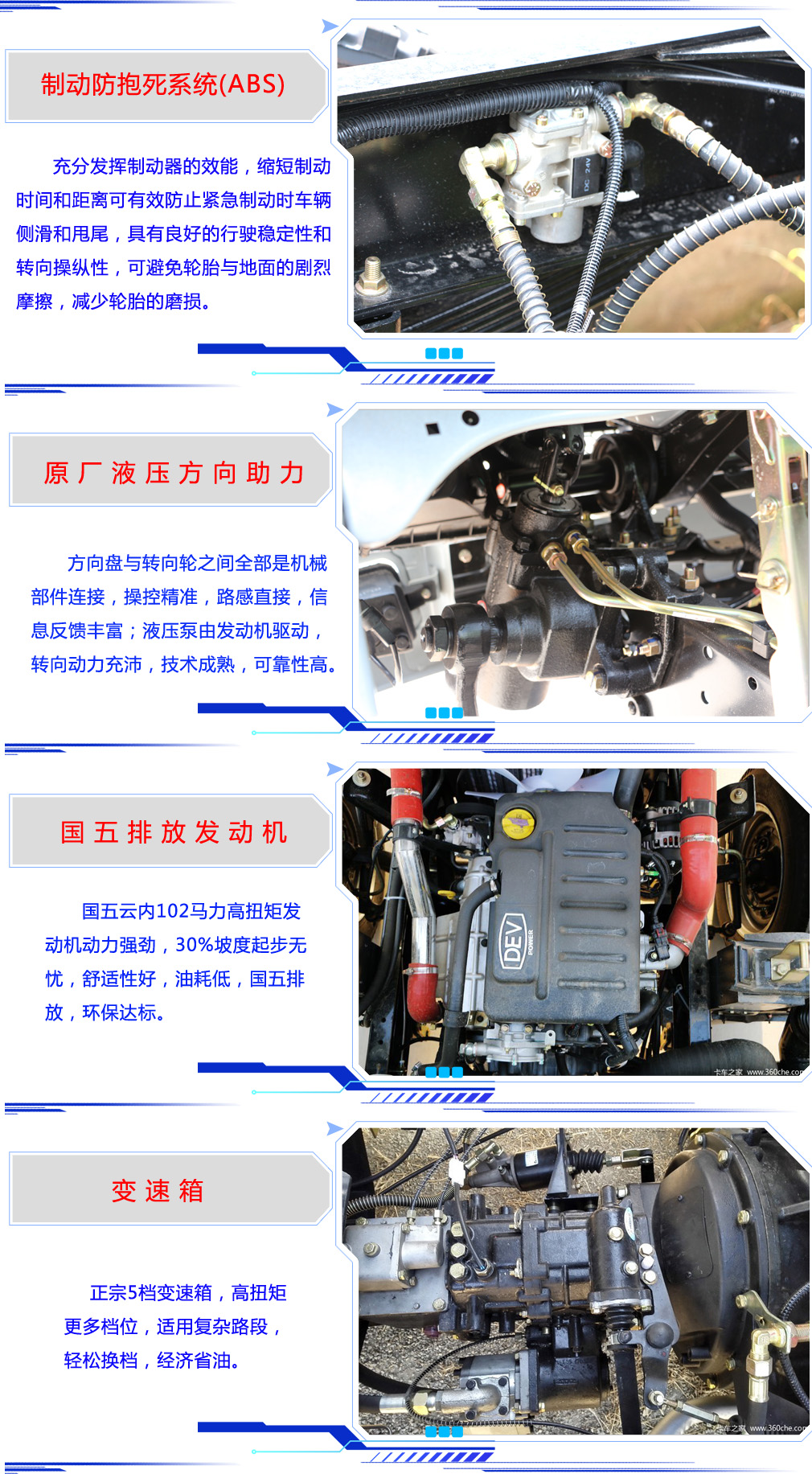 | 其他 | 1、防護材料:Q235A碳鋼,連接方式:左右側面及后下部防護均采用焊接連接,后下部防護斷面尺寸(mm):120×50,后下部防護離地高度(mm):410。2、 ABS型號:CM4XL-4S/4K(4S/4M),ABS生產廠:廣州科密汽車電子控制技術股份有限公司.3、整車長度與軸距對應關系為:4760/2600;4960/2800;4、選裝掛鐵桶裝置。5、車輛顏色、文字噴涂及局部細節可變化。6、發動機與油耗值對應關系為(L/km):WP2.1Q82E50/12.86,D19TCIE1/12.76,SD4D2 | ||
