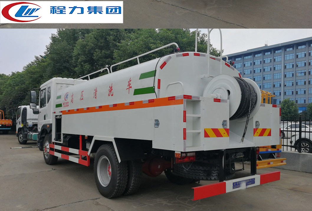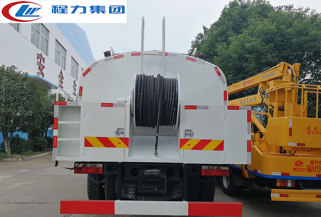 | 其他 | 該車通過取力器帶動高壓泵工作,高壓泵將普通的水轉化為高壓低流速的水,然后輸送到高壓管路,使其以一定的能量到達高壓噴嘴進行清洗工作.罐體有效容積9.7立方米,罐體外形尺寸(長度×長軸×短軸)(mm):3800(罐體實際總長5000,其中1200用于安裝高壓泵)×2300×1500,選裝前部噴水裝置時,整車長度為(mm):9100,前伸為(mm):950,選裝后卷盤以及后部外形變化,選裝后輪擋泥板,僅選用軸距(mm):4500,防護材料:Q235A碳鋼,連接方式:左右側面與箱體底面采用焊接連接,后下防護采用焊接連接,斷面尺寸(mm):150×50,后部防護離地高度(mm):450,ABS系統生產廠家,型號:焦作博瑞克控制技術有限公司,J ABS,僅選用輪胎:10.00R20 18PR,295/80R22.5 16PR,295/80R22.5 18PR。 | ||