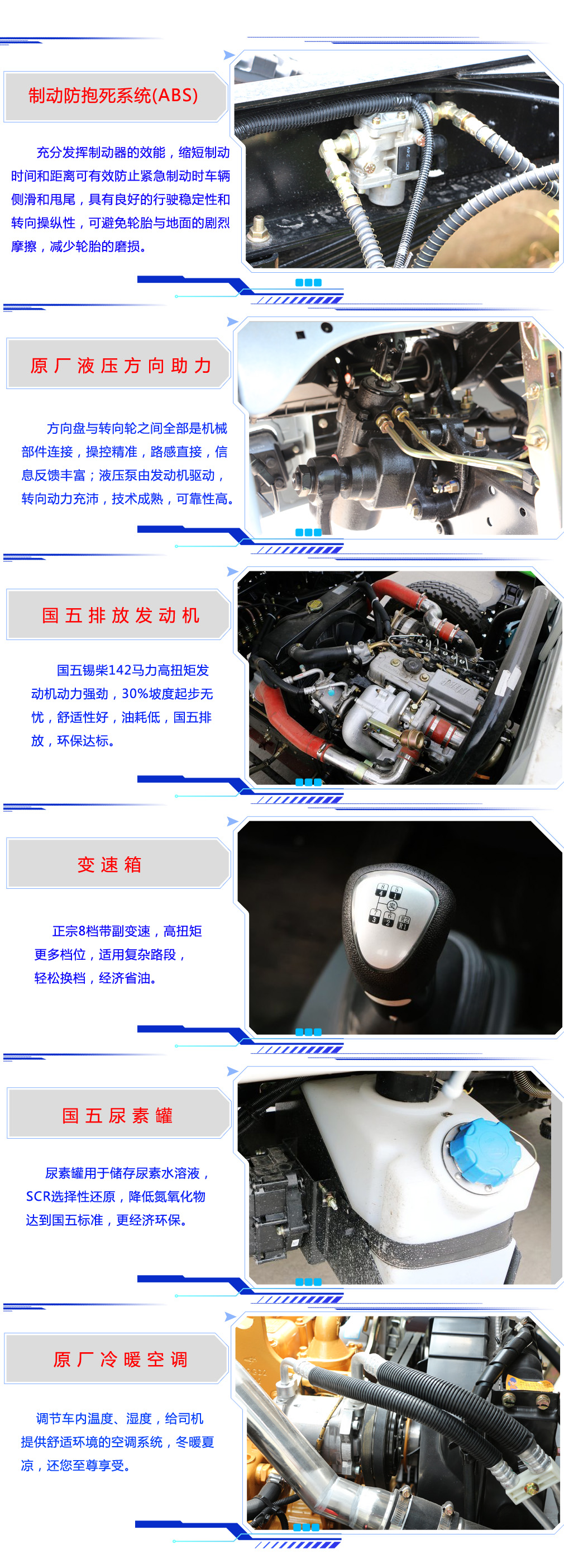 | 其他 | 可選裝H3代前圍及前部燈具。可選裝小反光鏡?刹贿x裝后爬梯。ABS型號:CM4XL-4S/4K(4S/4M),ABS生產企業:廣州市科密汽車制動技術開發有限公司。 側面及后下部防護裝置材料為Q235,連接方式為螺栓連接,后下部防護裝置斷面尺寸:150mm(斷面高度)×50mm(斷面寬度),離地高度為490mm。D25TCIE1油耗12.3,4DX23-140E5油耗12.5,YN33CRE1油耗12.4,YN38CRE1油耗12.5,ZD30D15-5N油耗12.3,YNF40E2油耗12.2。 | ||