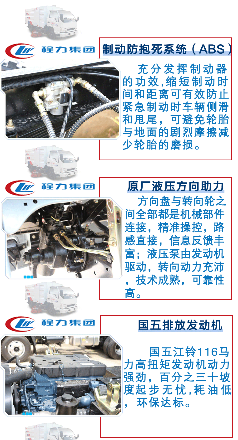 | 其他 | 隨底盤選裝駕駛室,選裝吸盤中置和單掃刷及無掃刷結構,選裝后部結構;選裝箱體外觀.ABS系統型號:APG3550500A,ABS系統生產廠家:浙江亞太機電股份有限公司;側防護采用專用裝置代替;后下部防護裝置材質為Q235A,焊接連接,下邊緣離地高450mm,截面高度尺寸120mm, 截面寬度尺寸50mm。 | ||