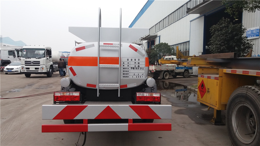| 其他 | 1,该车适用于危险品运输。类项号:3,罐体有效容积:2.1立方米。罐体外形尺寸(长×长轴×短轴)(mm):①3000(实际长3900,其中罐体前部900mm长用于安装加油机用)×1230×850;②(选装加油机下置时)3900×1120×720。2,防护材料:Q235A碳钢,连接方式:左右侧面及后下部防护均采用焊接连接,后部防护断面尺寸(mm):100×50,后部防护离地高度(mm):400。3,可装配加油机型号及生产企业:BL1111Z/珠海市贝林加油设备有限公司中山分公司,HS1812B/托肯恒山科技 | ||