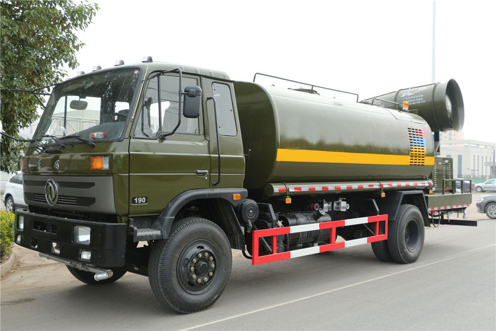 | 其他 | 1、罐体有效容积:9.77立方米,介质:水,密度:1000千克/立方米,当轴距(mm)为3950时,罐体尺寸(mm)为4000×2300×1500,当轴距(mm)为4500或4700时,罐体尺寸(mm)为4500×2200×1400;2、车辆长/轴距/前悬/后悬对应关系为(mm):7750/3950/1450/2350,8300/4500/1450/2350,8500/4700/1450/2350,7750/3950/1250/2550,8300/4500/1250/2550,8500/4700/1250/2550;3、侧防护及后下部防护装置均采用Q235A材质,均采用焊接连接,后下部防护尺寸(mm):50×150,离地面高度(mm)530;4、ABS型号为3631010-C2000,生产厂家为东科克诺尔商用车制动系统(十堰)有限公司;5、随底盘选装驾驶室;6、文字喷涂位置、车辆颜色及局部细节可变化。专用装置:抑尘雾炮 , 型号:LM-40 厂家:湖北龙马汽车装备有限公司。 | ||